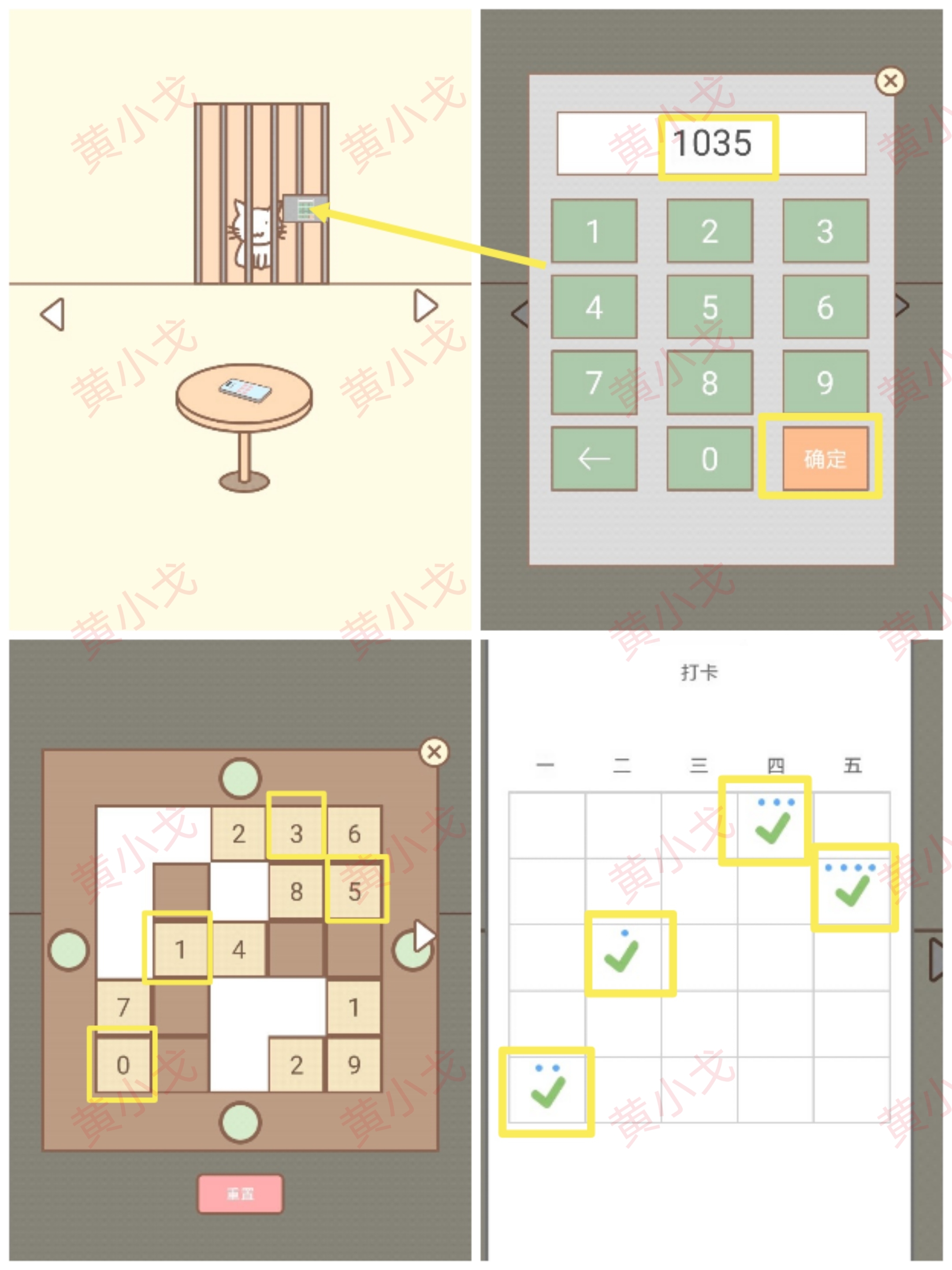 3.(中)點擊門上的密碼鎖,根據機關上的線索結合日歷上的線索,輸入密碼:1035;打開門