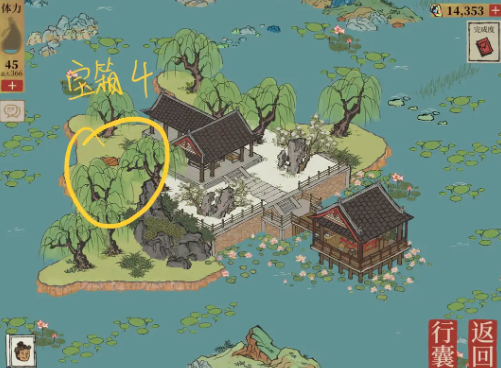 5、寶箱6:雷峰塔右下方找阿牛哥,點他旁邊的船就可以去繁花島,點島上的合歡樹可以獲得銅錢和加速票。