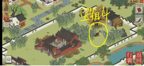 4、寶箱5:桃花旁邊的茅草屋,有個地洞。