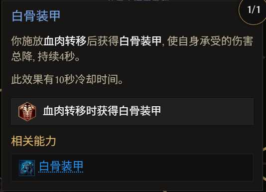 4.轉(zhuǎn)移可獲得7秒的白骨裝甲(空窗期3秒),提供8less